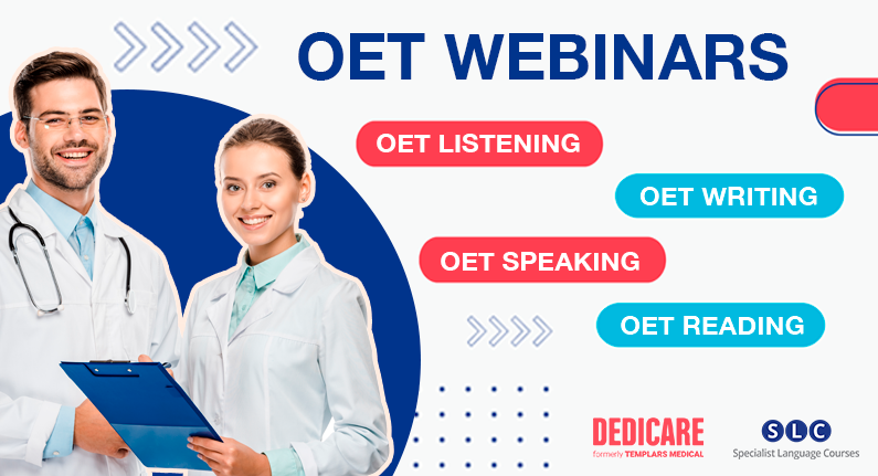 Dedicare is sponsoring a course of OET live lessons with language provider Specialist Language Courses (SLC). The lessons will assist EU trained doctors who want to move to the UK or Ireland with their English language skills. The lessons are free to attend and you are welcome to attend as many of these webinars as you like.